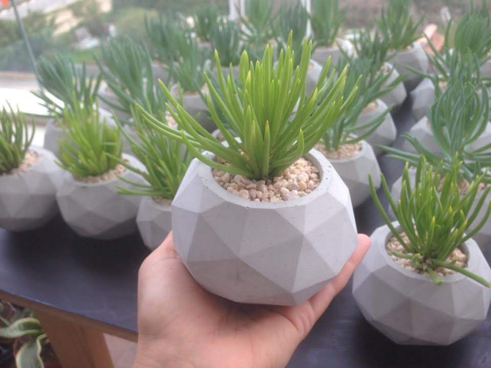עציץ בטון שהוא תכשיט של ממש עציץ גיאומטרי עם חיתוכי צלעות שמזכירים יהלום מלוטש מידות גובה 8 ס"מ קוטר 9 ס"מ